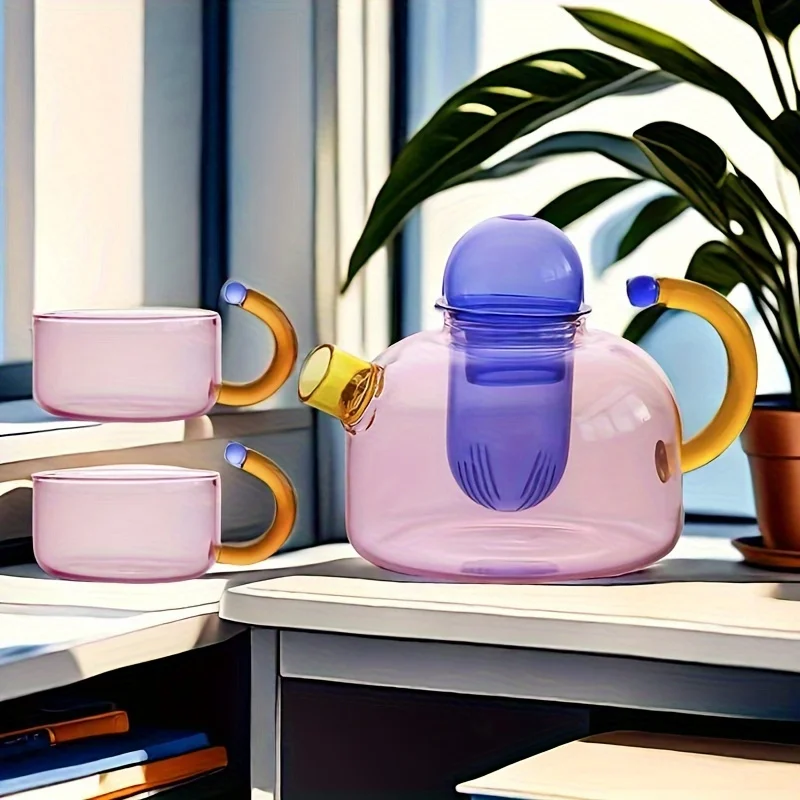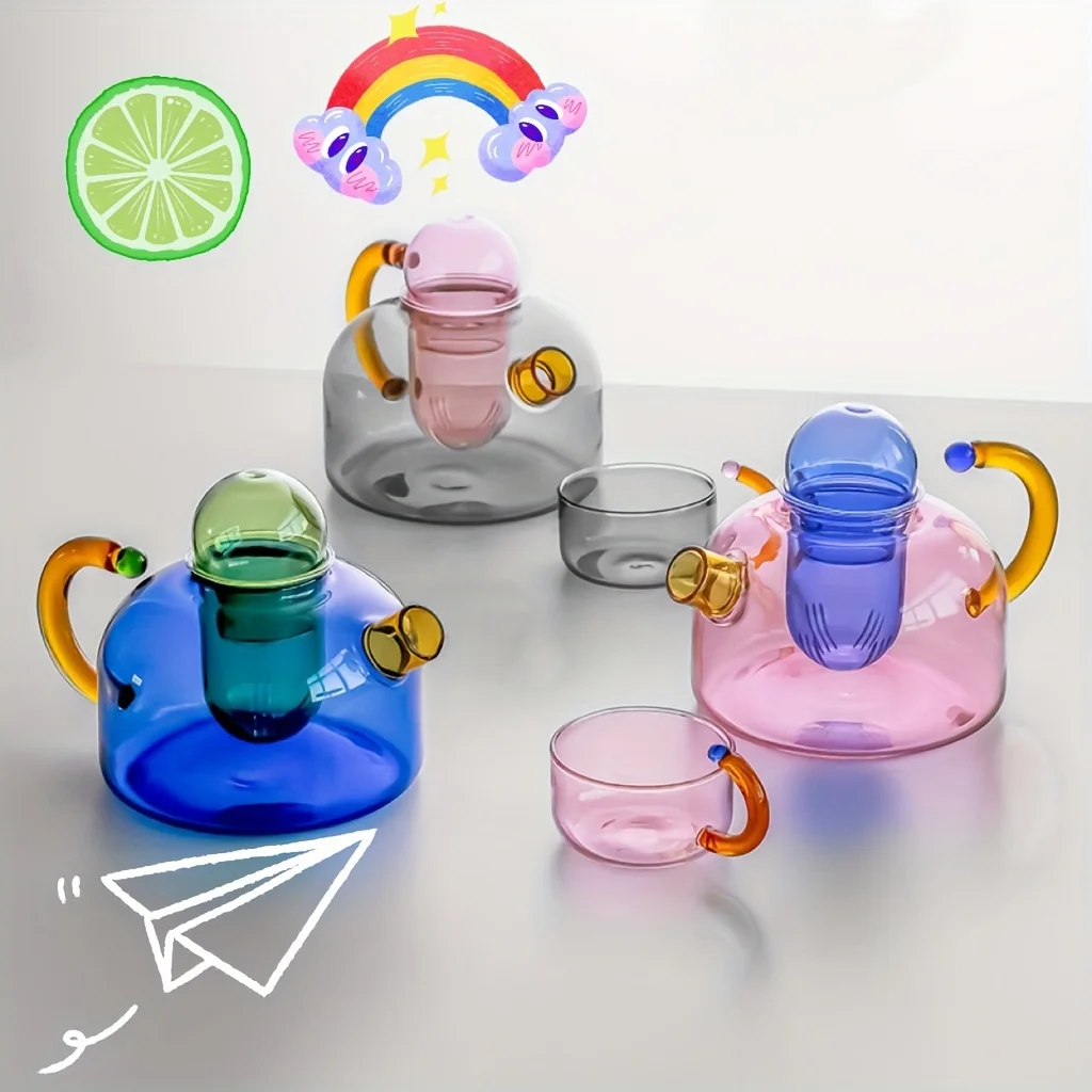 Creative Colorful Heat Resistant Glass Teapot with Tea Strainer for Electric Stove Tea Brewing