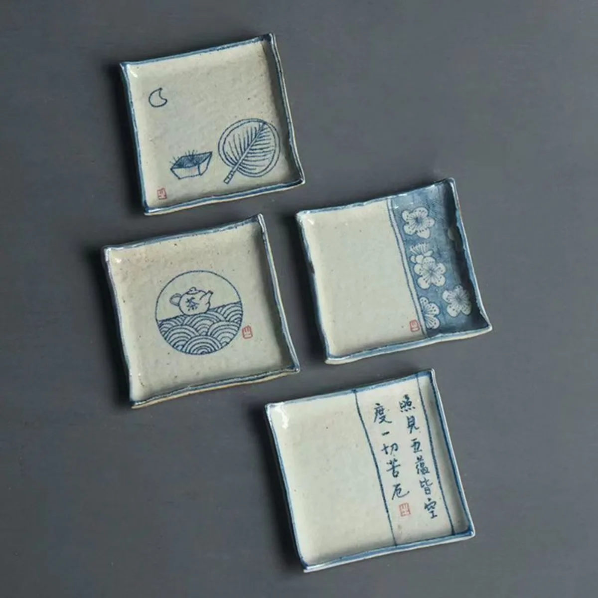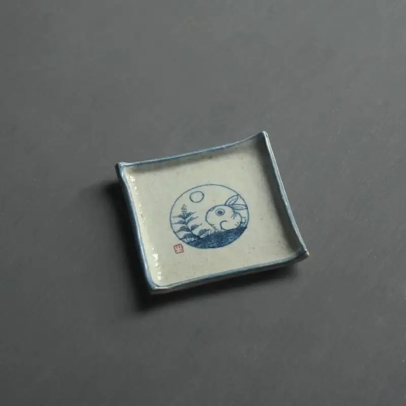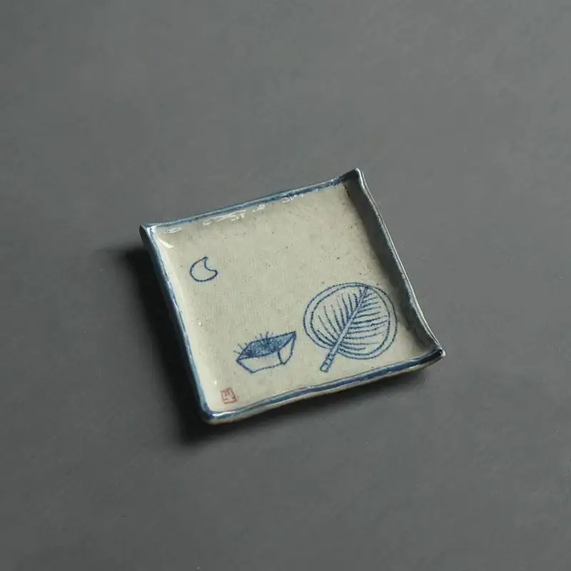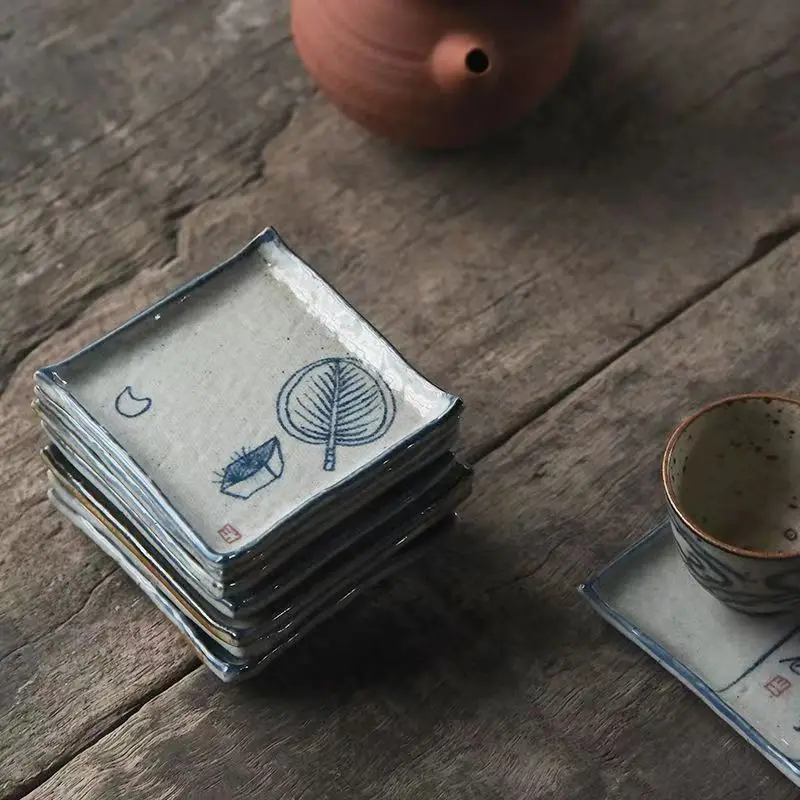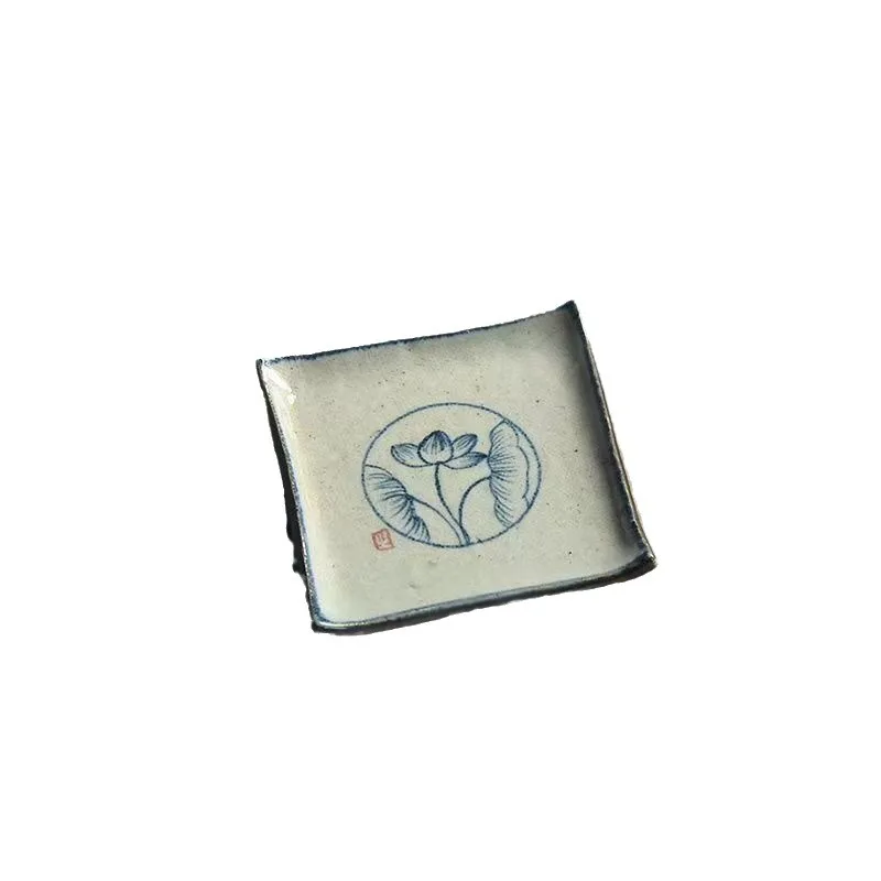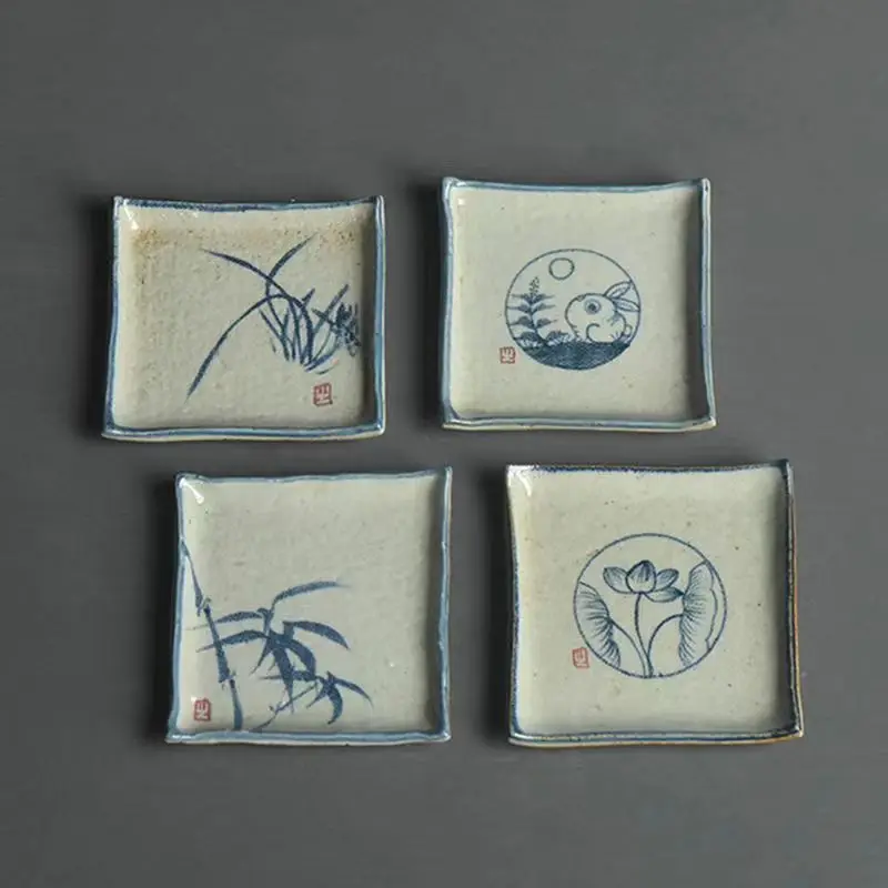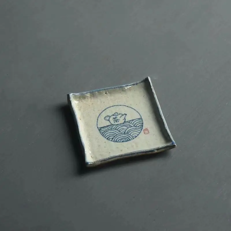 Handmade Ceramic Tea Coaster Square Cup Holder Blue White Porcelain Kung Fu Tea Set Zen Style