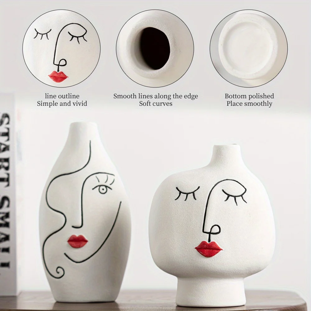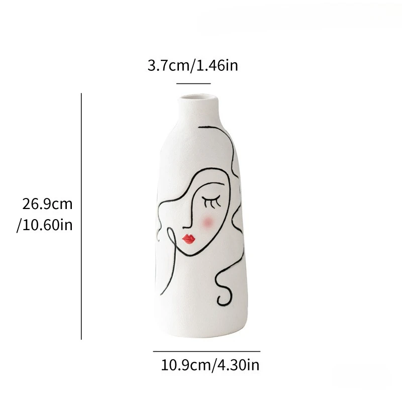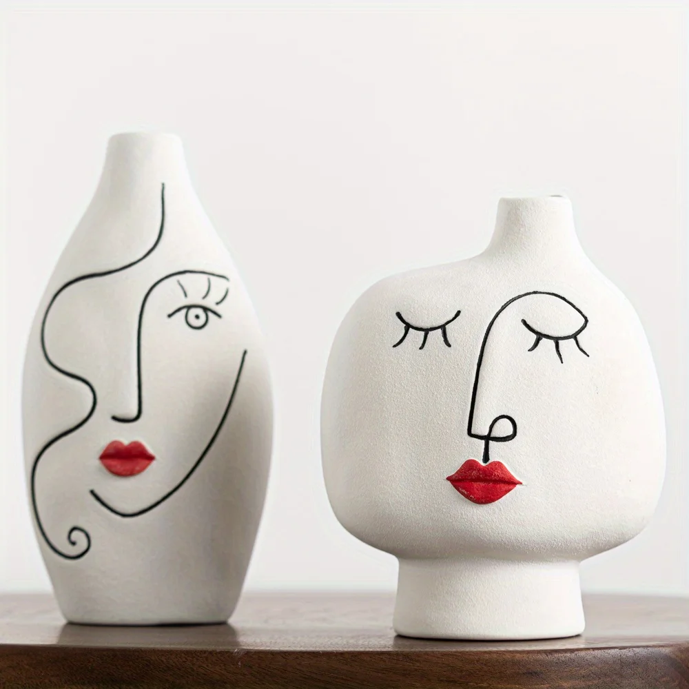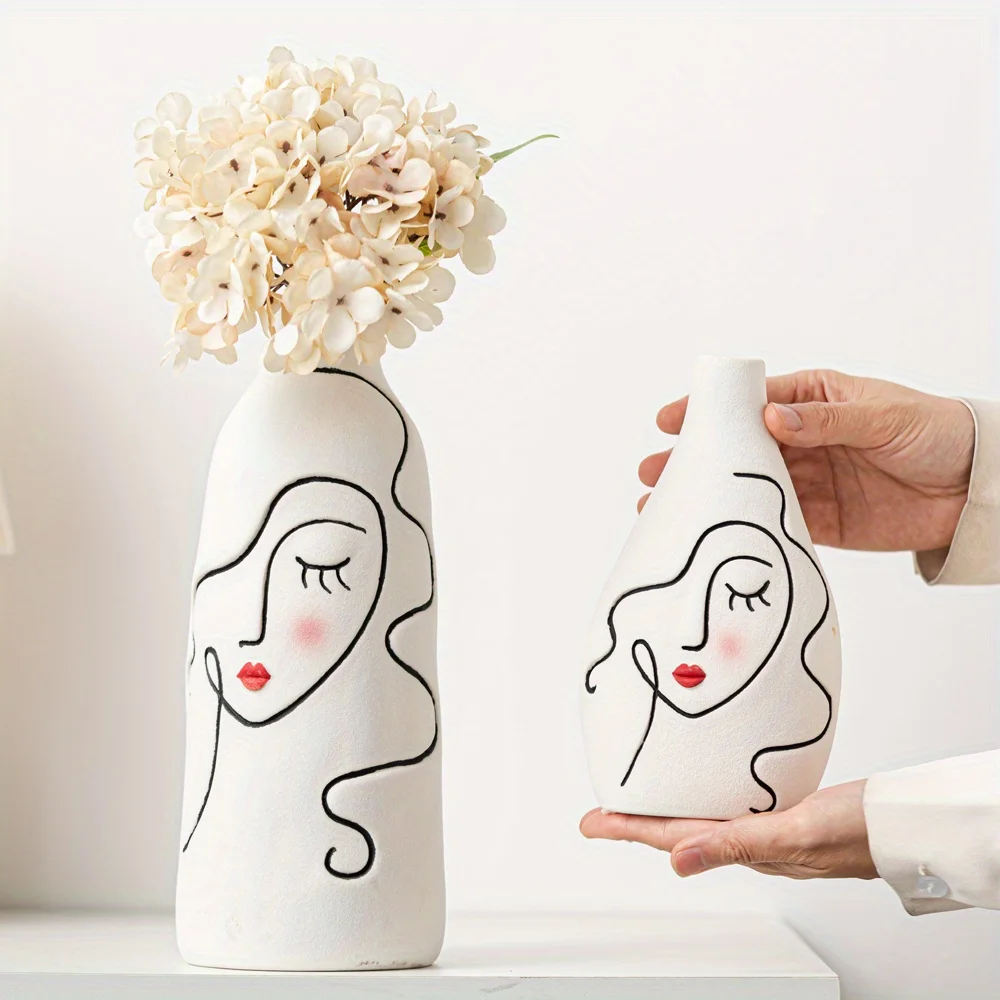 Nordic Hand Painted Face Creative Ceramic Vase Home Living Room Decor Flower Vase Gift